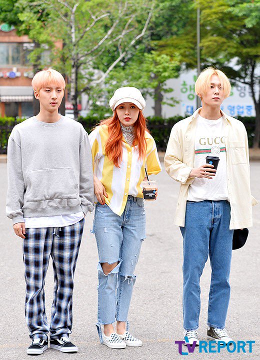 코디 진심 레전드임..연청+보라+회색 조합으로 통일감 만들고 각자 어울리게 코디라니